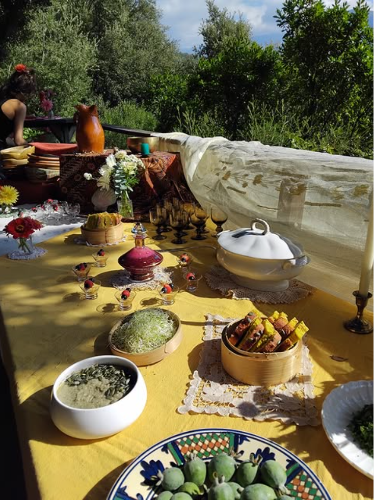 Lors des retraites et séjours ressourçants, je propose une cuisine consciente, vibrante et végétarienne, qui accompagne le travail intérieur et les pratiques spirituelles. Chaque plat devient un soutien à l’énergie du groupe – une nourriture subtile, vivante, et alignée à l’intention du moment.
